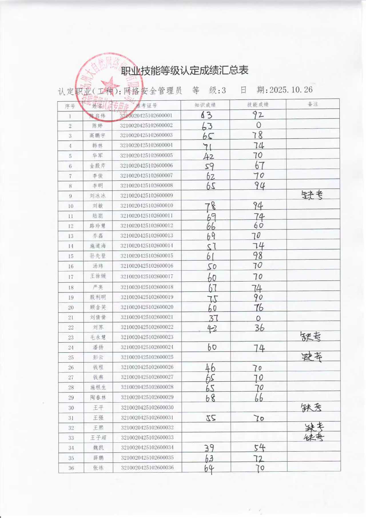 扬州大自然网络信息有限公司职业技能等级认定公示