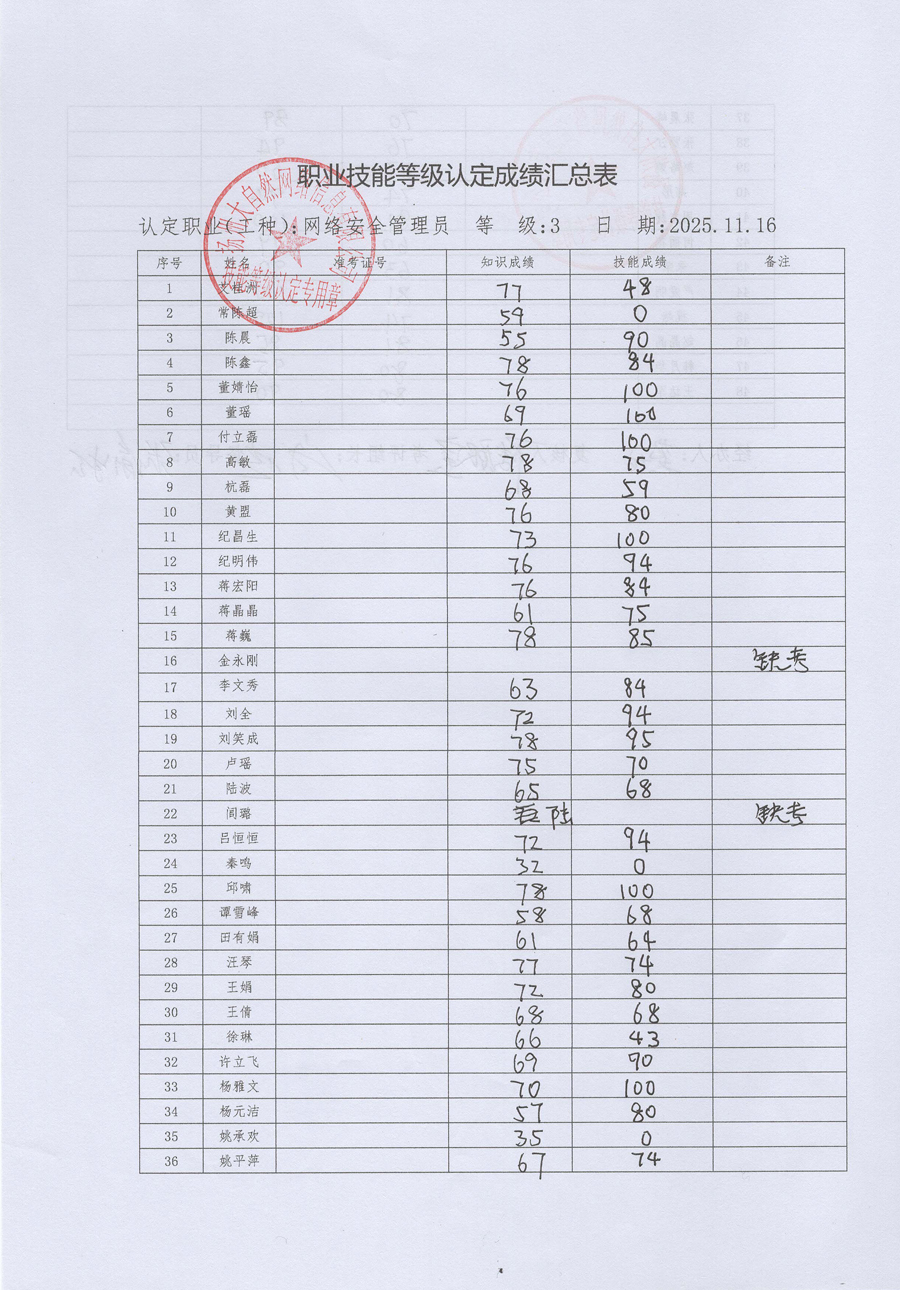 扬州大自然网络信息有限公司职业技能等级认定公示