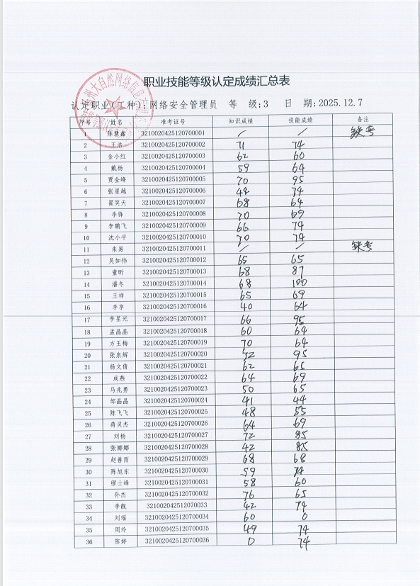 扬州大自然网络信息有限公司职业技能等级认定公示
