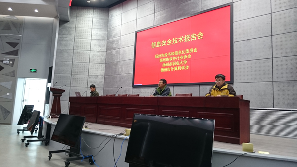 为积极响应国家网络安全宣传周活动,围绕国家活动“共建网络安全,共享网络文明”主题,以增强全民网络安全意识和网络安全自我保护意识为主旨,倡导“网络安全在我身边,网络安全从我做起”。2014年11月26日,我公司参加了由扬州市经信委、扬州市计算机学会、扬州市软件行业协会组织的“信息安全技术报告会”活动。