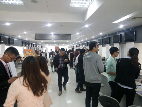 5月10号上午九点,公司后勤人员在邗江人才市场招聘现场。