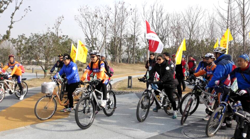 1月2日上午,“绿色交通,好行扬州”新年骑行活动从扬州城区起始出发,一路经过文昌阁、文昌大桥、万福大桥到达扬州凤凰岛旅游景区。