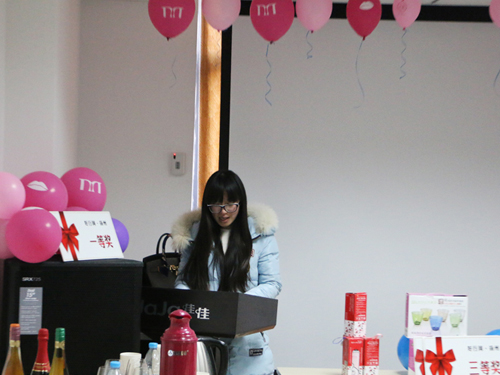 首先颁发的是三等奖,奖品是由佳佳化妆品连锁提供的护肤彩妆礼盒,为获奖者颁奖的是佳佳化妆品连锁的张经理。