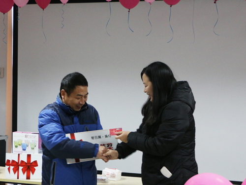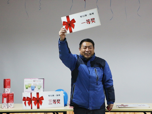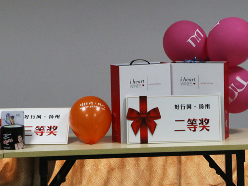 接下来颁发的是二等奖,奖品是由扬州大运河进出口有限公司提供的英国进口红酒套装礼盒,为获奖者颁奖的是扬州大运河进出口有限公司的罗总经理。