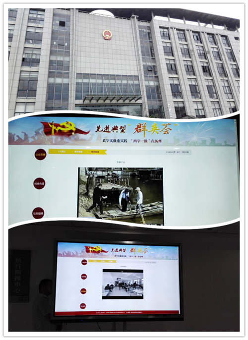 大自然作为技术支持方配合扬州政法委在仪征法院调试两学一做现场会展示内容