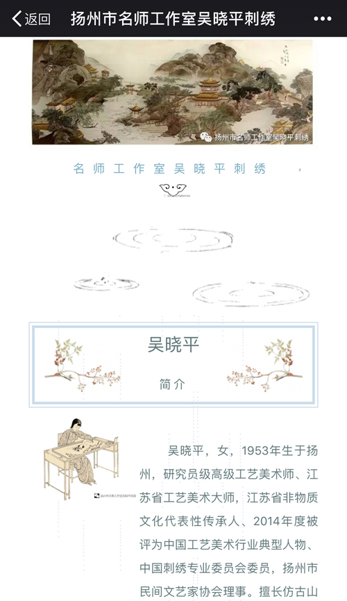扬州市名师工作室吴晓平刺绣邗江区人力资源与社会保障局