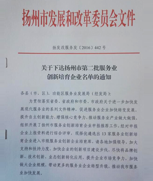 关于下达扬州市第二批服务业创新培育企业名单的通知