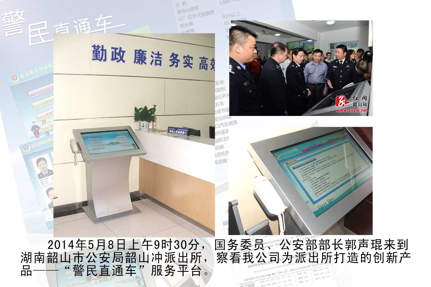 国务委员、公安部部长郭声琨来到韶山市公安局韶山冲派出所,察看我公司为派出所开发的“警民直通车产品”