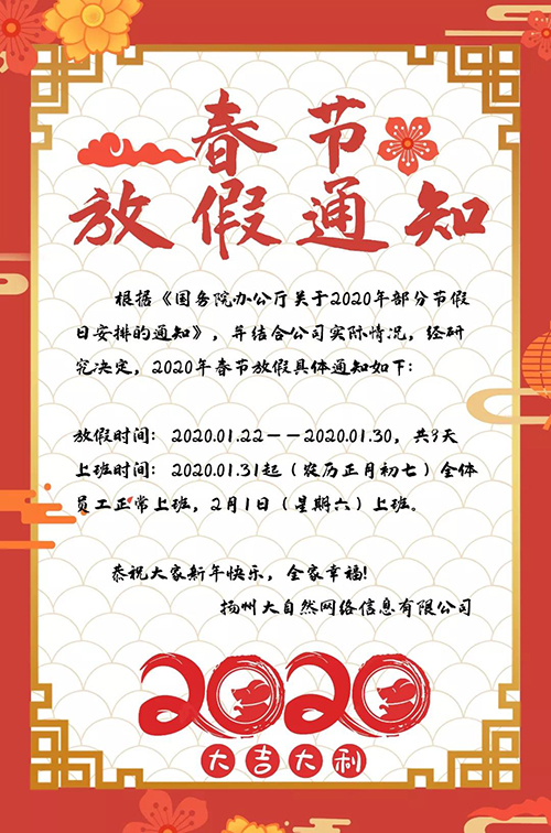 扬州大自然2020春节放假通知